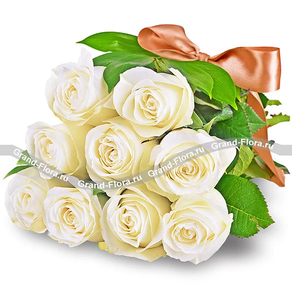 Классический вариант букета для подарка дорогому человеку или на долгожданное торжество. Ничего лишнего – только белоснежные розы, символизирующие искренность и чистоту намерений. Воплощение стиля, изысканной элегантности и дорогой простоты.